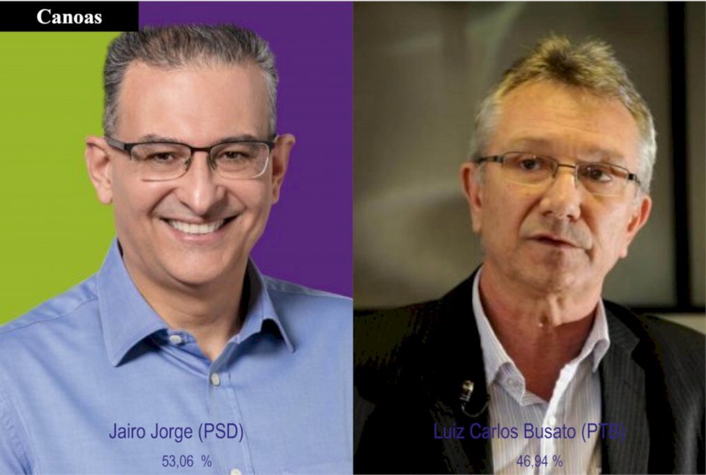 Já Canoas escolheu dar a Jairo Jorge mais quatro anos à frente do Executivo. Pelo Partido dos Trabalhadores (PT), Jorge foi prefeito por dois mandatos, entre 2009 e 2016, quando tentou eleger sua vice-prefeita, mas não teve sucesso, perdendo o pleito para Luiz Carlos Busato (PTB). Agora, venceu a eleição com 82 137 votos, que representam 53,06% dos válidos, derrotando o próprio Busato, que teve 72 649 votos, representando 46,9%.